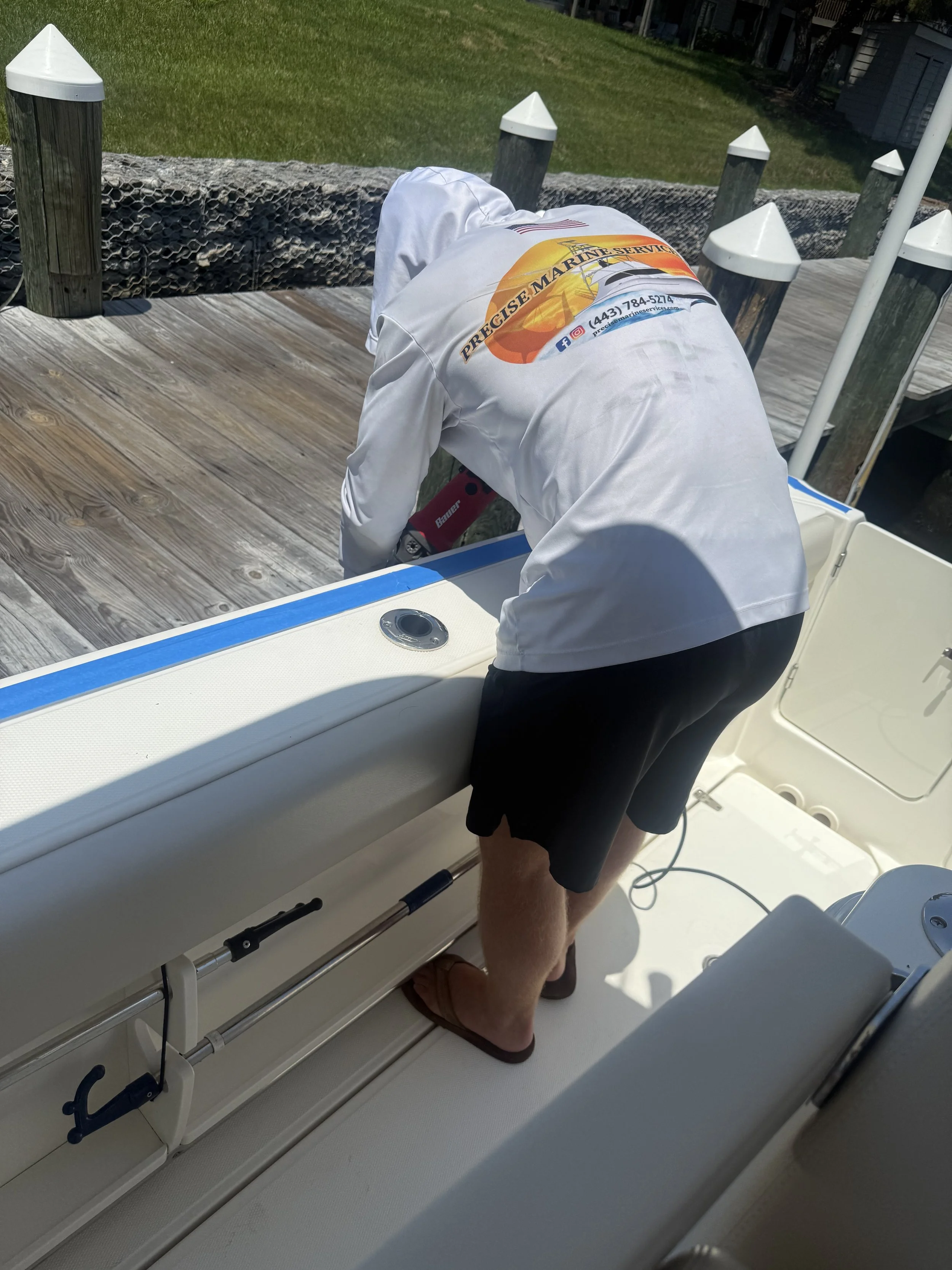 Buffing and Polishing are critical steps before applying wax. They clean and smooth the surface, allowing wax to bond more effectively and provide a longer-lasting, more protective finish. Skipping this step means waxing over oxidation, which reduces protection and doesn’t restore the boat’s appearance.